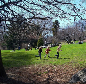 Two years ago, Joylynn Holder and her husband, Charlie Foster, started a programme called Brooklyn Forest - a series of classes held for toddlers to learn through activity in Prospect Park in New York City. In Brooklyn Forest, students will be guided rather than explicitly directed; for example, learning manners from seeing them modelled than being told to perform them. Snacks consist of wholewheat bread baked by Mr Foster, sliced apples and Saskatoon berry tea. Brooklyn Forest aims to expose children to a world beyond their "bubble" from a young age, and to embrace a natural, slower pace of life, as compared to a fast-moving, convenient urban one.
